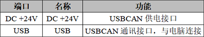 USBCAN-Modul 8接口卡使用DC+24V直流電源供電,USB接口作為通訊接口,因此在使用時(shí)需將DC+24V和USB一起接入。