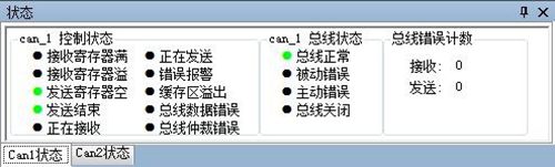 CAN總線狀態(tài)顯示:指示當(dāng)前CAN總線狀態(tài)包括:總線正常、被動錯(cuò)誤、主動錯(cuò)誤、總線掛起。