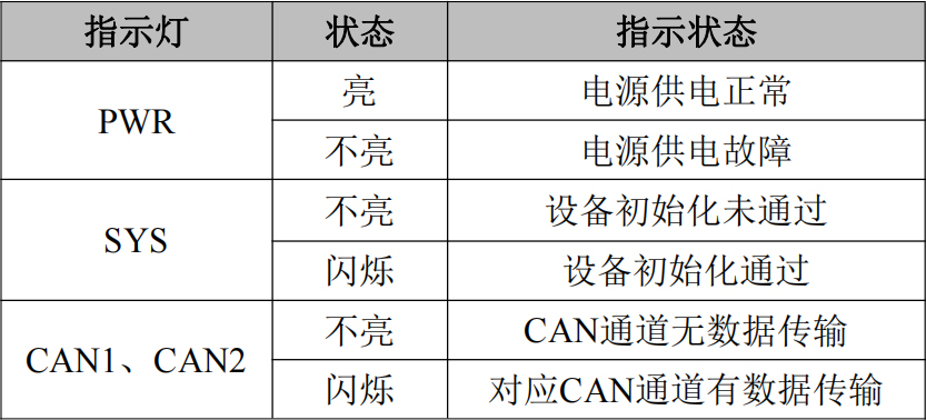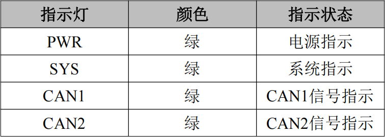 USBCAN-II FD接口卡指示燈狀態(tài)