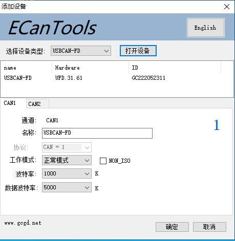 ①“選擇設(shè)備類型”:需選擇對應(yīng)硬件的版本,USBCAB-FD