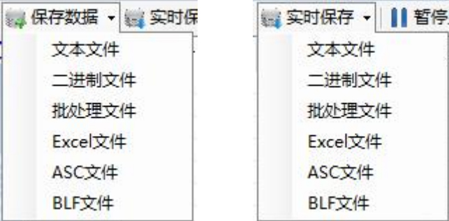 用戶可將當(dāng)前發(fā)送/接收列表中的全部數(shù)據(jù)保存到本地,保存格式詳見下表: