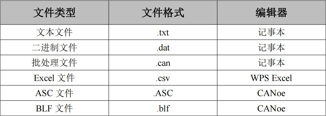 文本文件便于數(shù)據(jù)保存及后期分析,批處理文件可通過記事本軟件進(jìn)行修改后重新發(fā)送回總線。