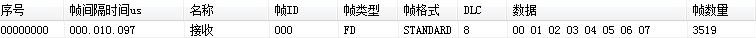 設(shè)備參數(shù)設(shè)置好后,軟件就進(jìn)入工作狀態(tài),如果總線上有數(shù)據(jù),這時(shí)接收數(shù)據(jù)窗口就會(huì)有數(shù)據(jù)顯示。接收窗口如下圖所示: