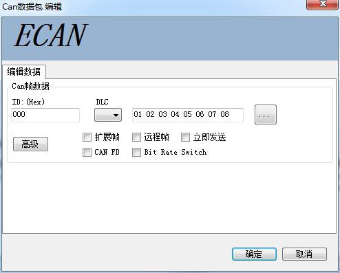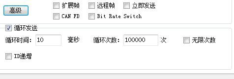 編輯數(shù)據(jù)界面中可設(shè)置幀ID,幀類型,幀格式,幀長度等數(shù)據(jù);在高級選項(xiàng)中,可以設(shè)置循環(huán)發(fā)送方式,可設(shè)置循環(huán)發(fā)送間隔時(shí)間,循環(huán)發(fā)送次數(shù),可設(shè)置ID遞增等方式。