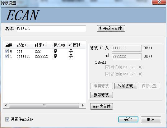 點(diǎn)擊“添加濾波”即可開始編輯,輸入想要過濾顯示的ID或ID段后點(diǎn)擊“保存設(shè)置”即可將濾波內(nèi)容添加到的左側(cè)。