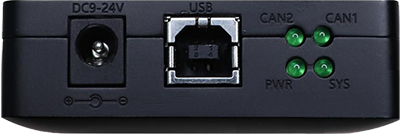USBCAN-I Pro+接口卡上電后,四個指示燈同時點(diǎn)亮,之后PWR和SYS常亮,表明設(shè)備已經(jīng)供電,系統(tǒng)完成初始化;否則,表示存在系統(tǒng)電源故障或其他故障,需聯(lián)系我公司客服人員。USB接口連接正常后,當(dāng)PC端有上位機(jī)軟件調(diào)用USBCAN設(shè)備時,USB信號指示燈SYS會閃爍。當(dāng)CAN總線上有數(shù)據(jù)收發(fā)時,對應(yīng)的RX、TX指示燈會有閃爍。