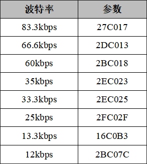 如您使用的是特殊波特率,請點(diǎn)擊自定義按鈕,此時需要您輸入一個十六進(jìn)制碼,下表中列出了部分特殊波特率的值,如您需要其他波特率請聯(lián)系我們,我們會幫您計算寄存器設(shè)置值。
