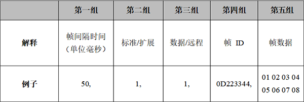 第三位(3):打開第幾路CAN,打開CAN1輸入1,打開CAN2輸入2同時打開CAN1和CAN2輸入3;