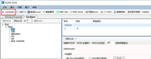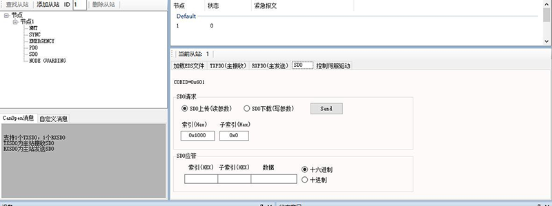 CANopen主站模塊的SDO功能分為發(fā)送SDO和接收SDO,用于讀寫對象字典。