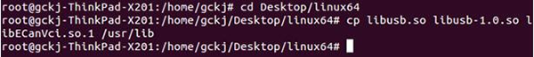 4.進(jìn)入USBCAN驅(qū)動文件夾,拷貝libusb.so、libusb-1.0.so、libECanVci.so.1到gcc編譯庫目錄下。(默認(rèn)路徑為/usr/lib)輸入:cp libusb.so libusb-1.0.so libECanVci.so.1/usr/lib(默認(rèn)路徑為/usr/lib)