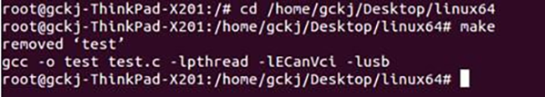 6.再次進(jìn)入USBCAN驅(qū)動文件夾,編譯。輸入:make