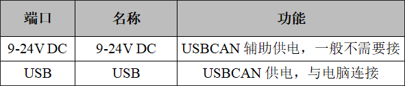 USBCAN-II C接口卡具有即插即用的特點,因此用戶可以使用PC機的USB接口直接向USBCAN-II C接口卡供電;若USB供電不足,則需選用外部電源供電方式。