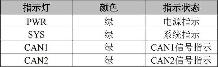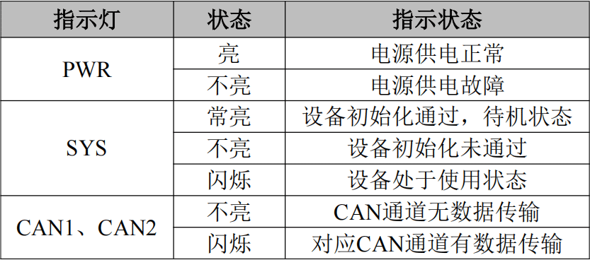 表3.3 USBCAN-II C接口卡指示燈狀態(tài)