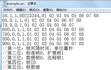 除以上基本功能外,軟件還具有發(fā)送文件功能。文件發(fā)送分為普通文件發(fā)送及批處理文件發(fā)送。普通文件發(fā)送可以向總線上的節(jié)點發(fā)送文件,用戶可以基于此功能開發(fā)CAN總線程序燒錄軟件;批處理文件發(fā)送可以將用戶保存的批處理文件(.can)按保存時的時序及數(shù)據(jù)重新發(fā)送回CAN總線,批處理文件保存詳見4.4。