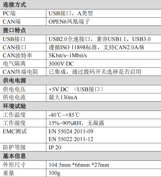 (6)CAN-bus接口采用電氣隔離,隔離模塊絕緣電壓:3000V DC;