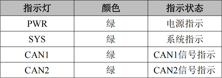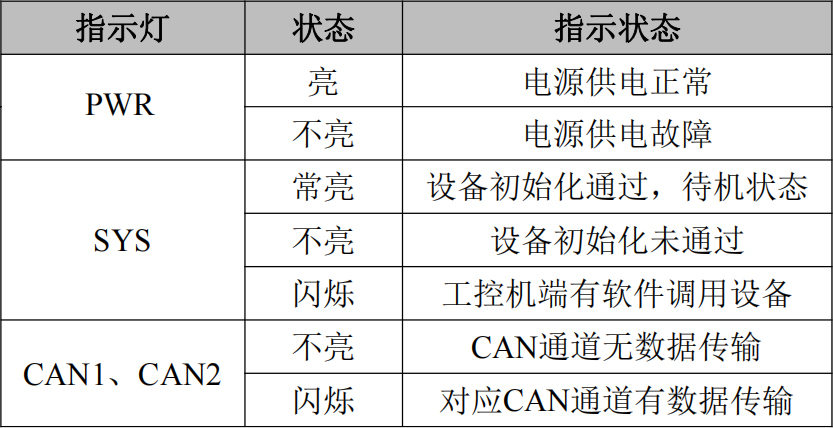 表3.2 USBCAN-ME接口卡指示燈狀態(tài)