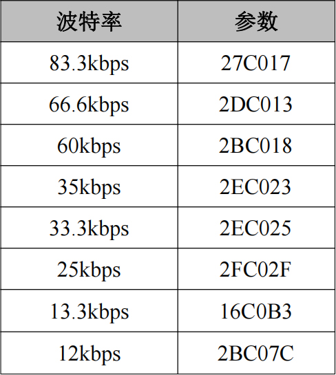如您使用的是特殊波特率,請點(diǎn)擊自定義按鈕,此時(shí)需要您輸入一個(gè)十六進(jìn)制碼,下表中列出了部分特殊波特率的值,如您需要其他波特率請聯(lián)系我們,我們會(huì)幫您計(jì)算寄存器設(shè)置值。