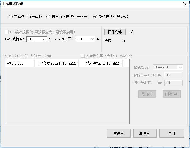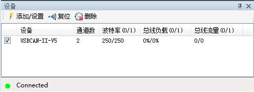 請注意,設(shè)置波特率尤其重要,許多客戶反映設(shè)備連接上之后沒有數(shù)據(jù),或總線錯(cuò)誤,實(shí)為波特率沒有設(shè)置就直接點(diǎn)擊確定打開設(shè)備。在這里提示您,無論您將我們的設(shè)備作為主或從設(shè)備使用,只要您將設(shè)備接入到CAN總線上,必須將設(shè)備的波特率設(shè)置成與目標(biāo)設(shè)備波特率一致,才可以正常工作。