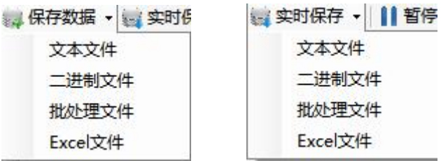 點(diǎn)擊工具條上的“實(shí)時(shí)保存”,設(shè)置實(shí)時(shí)保存的文本類型和文件名,便可開始數(shù)據(jù)實(shí)時(shí)保存功能(即設(shè)置保存節(jié)點(diǎn)A),再次點(diǎn)擊(即設(shè)置保存節(jié)點(diǎn)B),系統(tǒng)會(huì)停止保存,并將從開始(A)到結(jié)束(B)的數(shù)據(jù)全部寫入保存文件。請注意,系統(tǒng)并不會(huì)實(shí)時(shí)寫入數(shù)據(jù)。即在實(shí)時(shí)保存過程中,保存的文件中并不會(huì)有數(shù)據(jù)。