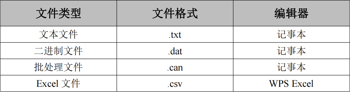 文本文件便于數(shù)據(jù)保存及后期分析,批處理文件可通過記事本軟件進(jìn)行修改后重新發(fā)送回總線。對于批處理文件格式的說明詳見4.4.3。