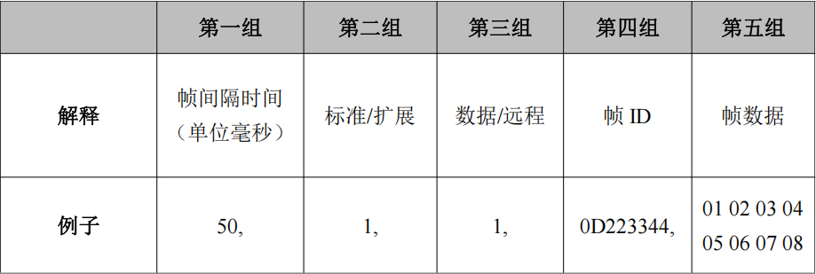 第六位(1):發(fā)送時(shí)間間隔,單位ms;第七位(1000):發(fā)送次數(shù)。