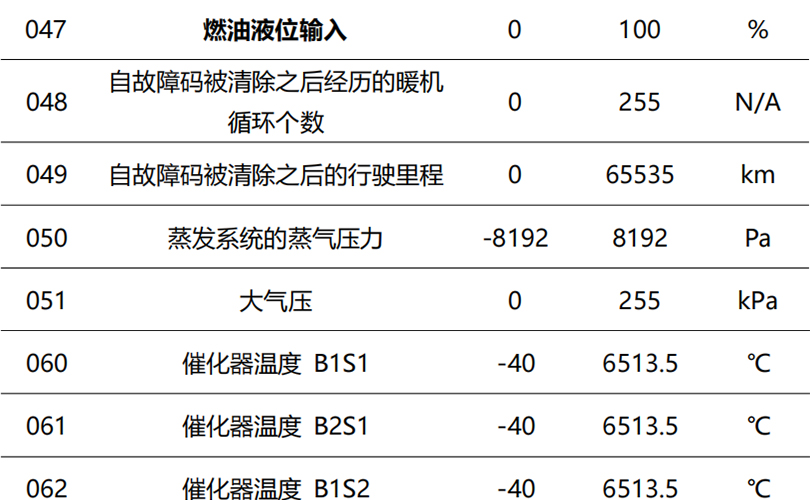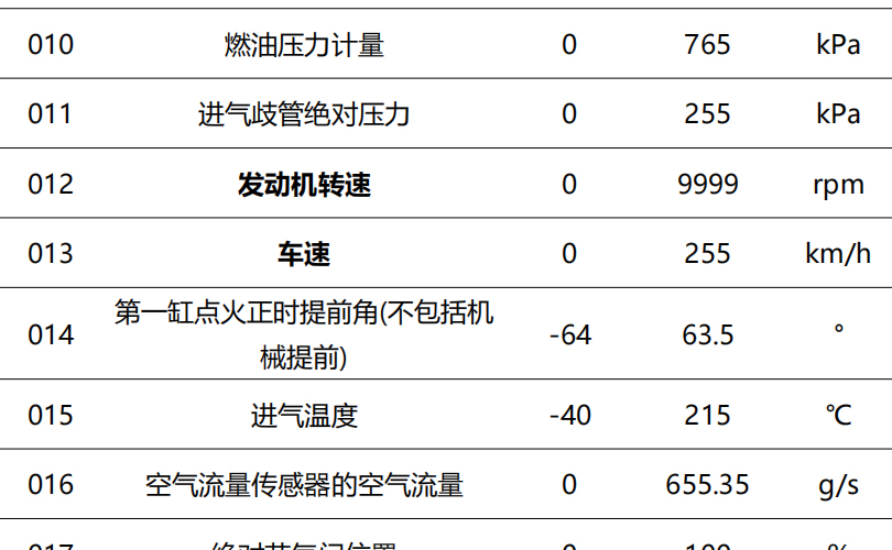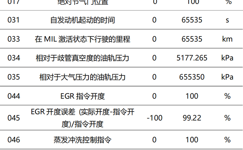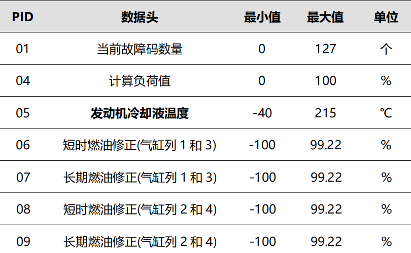 您可通過輸入PID的值來手動(dòng)獲取車輛的各種參數(shù)。請注意,需要首先選取正確的發(fā)送命令類型,即11Bit或29Bit。詳細(xì)的PID值(十進(jìn)制)如下表所示。