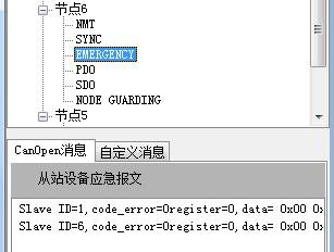 ECANTools軟件可接收到從站節(jié)點(diǎn)發(fā)出的EMERGENCY報(bào)文,該報(bào)文由出現(xiàn)緊急狀態(tài)的從節(jié)點(diǎn)發(fā)出,ECANTools軟件的CANopen主站功能可接收并處理此緊急報(bào)文。