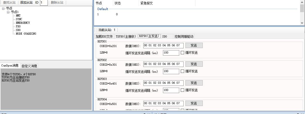 用戶可通過ECANTools軟件循環(huán)發(fā)送SYNC報(bào)文,所有的同步PDO會(huì)根據(jù)SYNC報(bào)文發(fā)送。