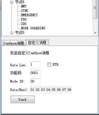 ECANTools軟件還可通過編輯自定義消息手動(dòng)模擬CANopen數(shù)據(jù),用戶可直接通過編寫功能碼、從站node ID、數(shù)據(jù)的方式直接向CANopen從站發(fā)送數(shù)據(jù)。