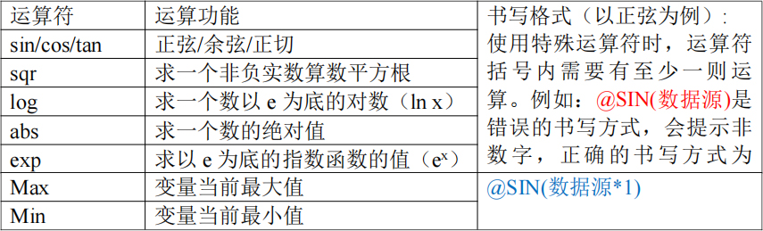 曲線功能中可提供的特殊運(yùn)算如下表所示,請嚴(yán)格按照運(yùn)算形式書寫!