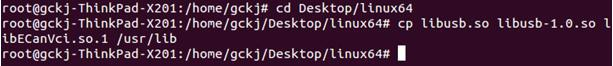 輸入:cp libusb.so libusb-1.0.so libECanVci.so.1/usr/lib(默認(rèn)路徑為/usr/lib)