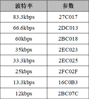如您使用的是特殊波特率,請(qǐng)點(diǎn)擊自定義按鈕,此時(shí)需要您輸入一個(gè)十六進(jìn)制碼,下表中列出了部分特殊波特率的值,如您需要其他波特率請(qǐng)聯(lián)系我們,我們會(huì)幫您計(jì)算寄存器設(shè)置值。