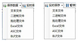 用戶可將當(dāng)前發(fā)送/接收列表中的全部數(shù)據(jù)保存到本地,保存格式詳見下表: