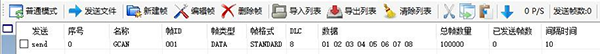 DBC消息編輯:右側(cè)上方DBC消息發(fā)送列表:顯示用于發(fā)送的消息列表,可雙擊編輯發(fā)送次數(shù)、發(fā)送間隔;