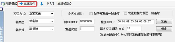添加:點(diǎn)擊【+】按鈕從DBC消息選擇列表中添加消息至發(fā)送列表;