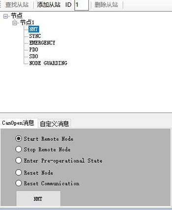 GCANTools軟件還可通過編輯自定義消息手動(dòng)模擬CANopen數(shù)據(jù),用戶可直接通過編寫功能碼、從站node ID、數(shù)據(jù)的方式直接向CANopen從站發(fā)送數(shù)據(jù)。