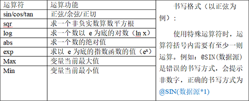 曲線功能中可提供的特殊運(yùn)算如下表所示,請(qǐng)嚴(yán)格按照運(yùn)算形式書寫!