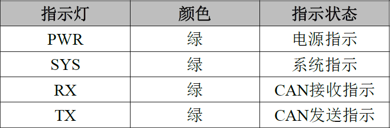 USBCAN-I Pro接口卡指示燈狀態(tài)