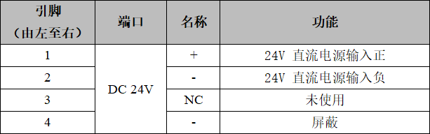 GCAN-206模塊的電源接口由1個4Pin插拔式接線端子引出,其接口定義如表所示。
