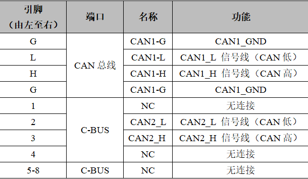 GCAN-206模塊CAN總線接口由2個4Pin接線端子引出,可以用于連接2個CAN總線網(wǎng)絡(luò)或者CAN總線接口的設(shè)備,其接口定義如表所示。