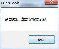 設(shè)置完成后,點擊寫設(shè)置,會出現(xiàn)如圖所示的“設(shè)置成功,請重新插拔usb!”結(jié)果。之后設(shè)備需要重新上電,配置才會生效。