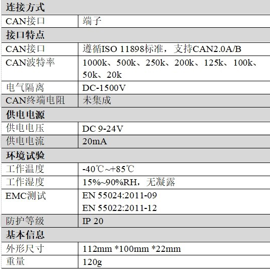 (6)CAN總線接口采用電氣隔離,隔離模塊絕緣電壓:DC 1500V;