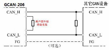 請注意:GCAN-206模塊內(nèi)部未集成120Ω終端電阻,模塊外部提供電阻接線端子。需要接入終端電阻時,將電阻兩端分別接入CAN_L、CAN_H即可。