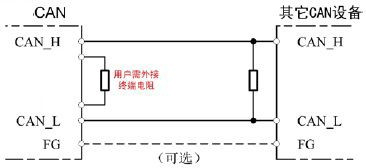 請注意:GCAN-204模塊內(nèi)部未集成120Ω終端電阻,模塊外部提供電阻接線端子。需要接入終端電阻時,將電阻兩端分別接入CAN_L、CAN_H即可。