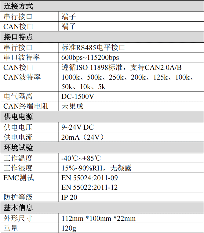 (6)CAN-bus接口采用電氣隔離,隔離模塊絕緣電壓:DC 1500V;