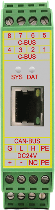 GCAN-205模塊集成1路DC 24V電源接口、1路標(biāo)準(zhǔn)CAN總線接口、1路標(biāo)準(zhǔn)太網(wǎng)接口。GCAN-205模塊接線端子排如圖所示。GCAN-205模塊接線端子排