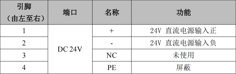 GCAN-205模塊的電源接口由一個4Pin插拔式接線端子引出,其接口定義如表所示。