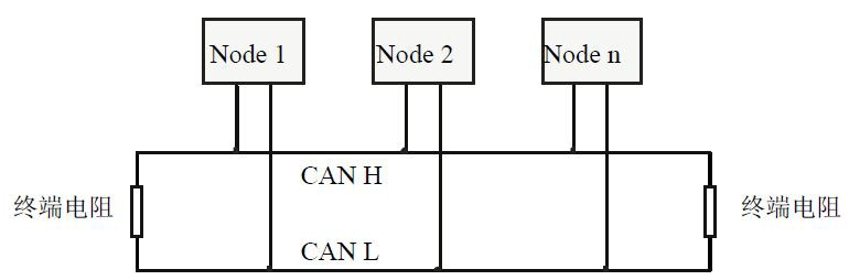 GCAN-205模塊接入CAN總線的連接方式:將CAN_H連CAN_H,CAN_L連CAN_L即可建立通信。CAN總線網(wǎng)絡(luò)采用直線拓?fù)浣Y(jié)構(gòu),總線最遠(yuǎn)的2個終端需要安裝120Ω的終端電阻;如果節(jié)點數(shù)目大于2,則中間節(jié)點不需要安裝120Ω的終端電阻。對于分支連接,其長度不應(yīng)超過3米。CAN總線的連接見圖所示。CAN總線網(wǎng)絡(luò)的拓?fù)浣Y(jié)構(gòu)
