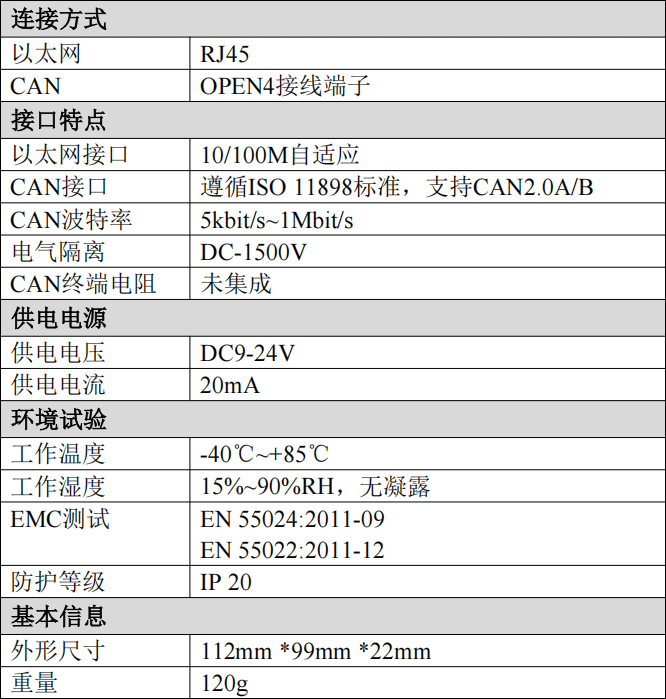 二、設(shè)備參數(shù)沈陽廣成科技GCAN-205型CAN轉(zhuǎn)Modbus TCP轉(zhuǎn)CAN模塊的設(shè)備參數(shù)包括: