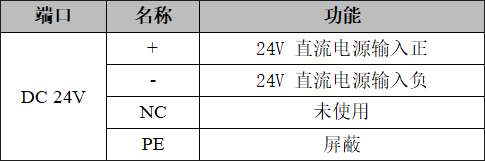 GCAN-GT-412模塊的電源接口由1個4 Pin插拔式接線端子引出,其接口定義如表所示。